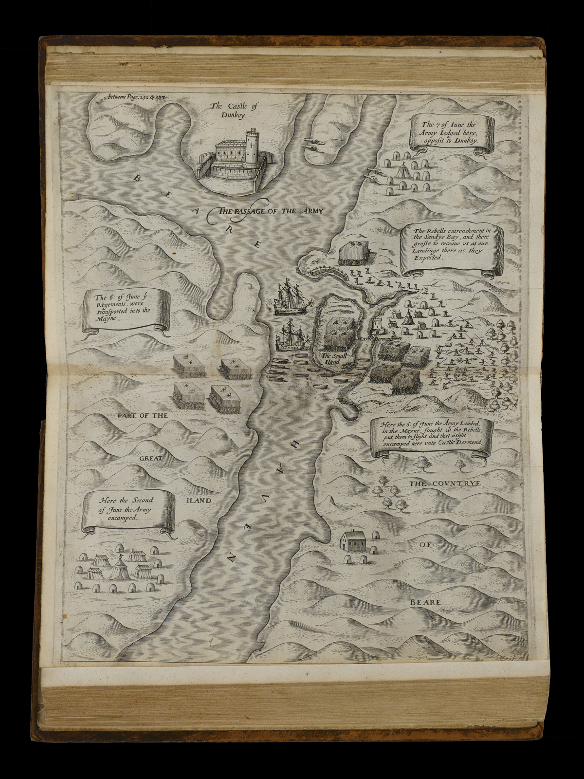 Citation: Thomas Stafford, Pacata Hibernia ... an Historie of the Late Warres of Ireland (London, 1633). Marsh's Library Exhibits ‘Mapping History’ curated by Annaleigh Margey, Jason McElligott and Sue Hemmens with Armagh Robinson Library; Held by Marsh's Library (IE-DuMAL); accessed February 28, 2026, https://web.marshlibrary.ie/digi2/exhibits/show/maps/item/424